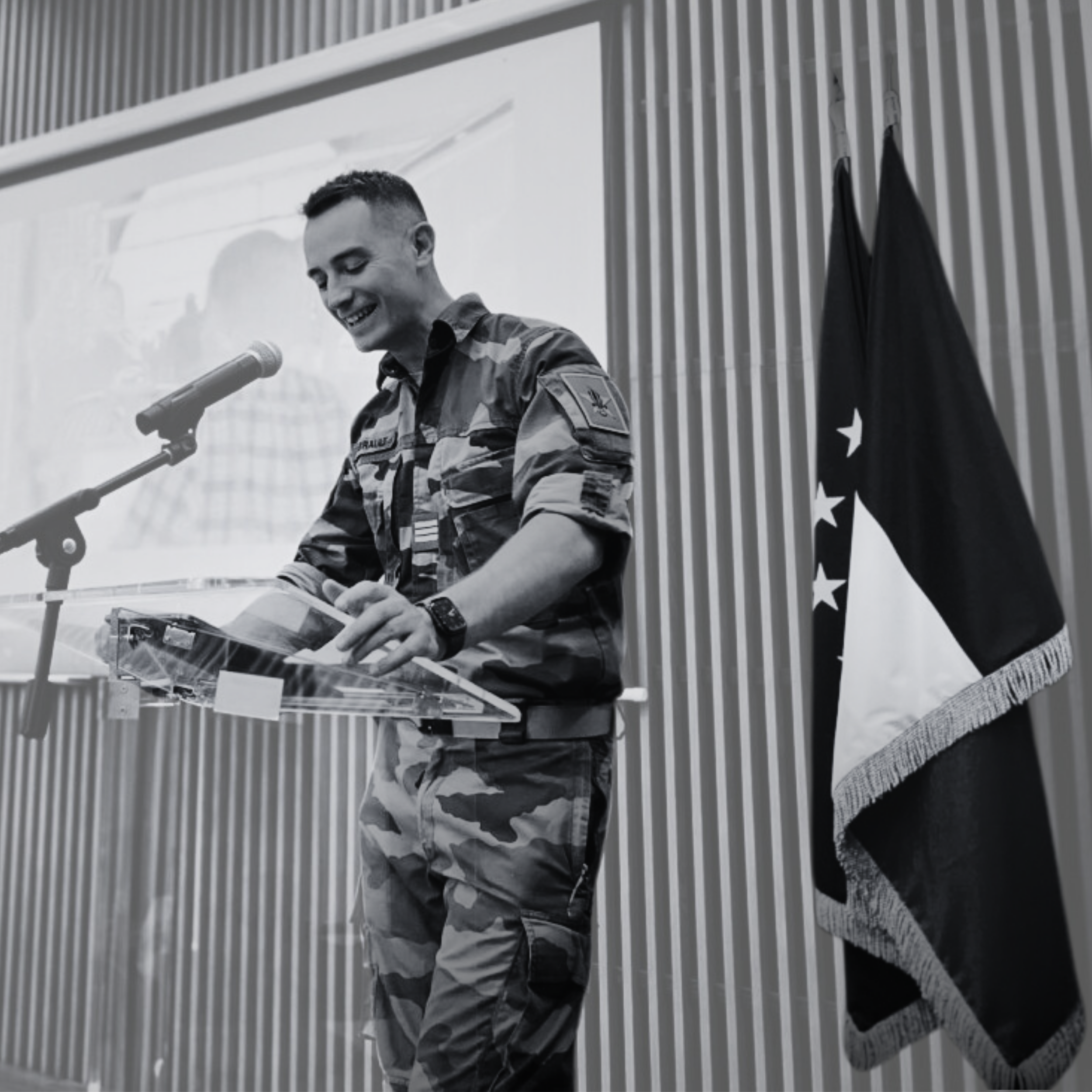 Diplômé de Sciences Po Paris et de l’Académie Militaire de Saint-Cyr, ancien professeur d’Histoire, le capitaine Brault a été conseiller en communication avant d’être officier. Mais l’année 2015 l’a décidé à servir la défense. Il a donc eu l’honneur de commander des légionnaires en opérations extérieures et intérieures. Chef du Groupe Commando Montagne (GCM), puis directeur d’un service dédié au soutien de 1100 légionnaires, il est entré en reconversion professionnelle avec une mission : rapprocher les cultures civiles et militaires.